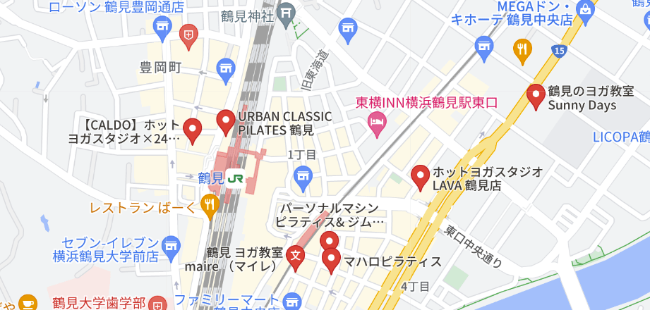 ここまで鶴見のヨガスタジオを紹介しましたが、スタジオごとで立地が異なります。