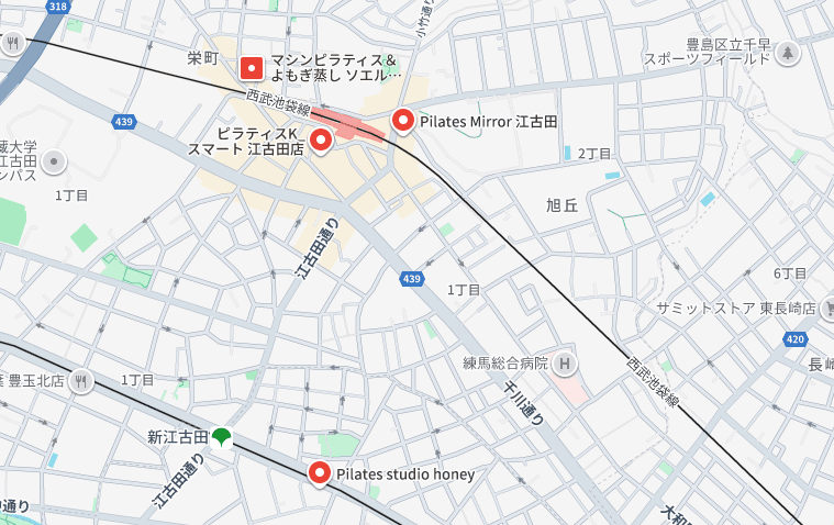 たとえば、ピラティスK_smart 江古田店は江古田駅近くにありますが、Pilates studio honeyは新江古田駅が最寄り駅になります。