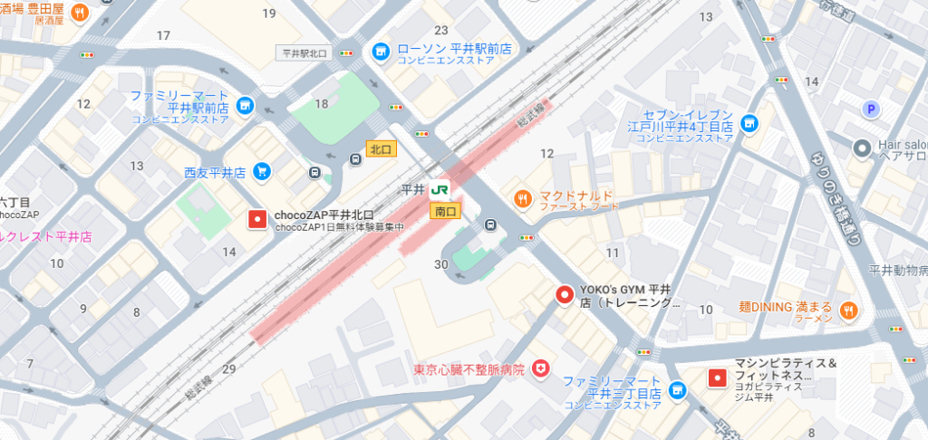 平井には様々なピラティススタジオがありますが、その立地はスタジオごとで異なります。