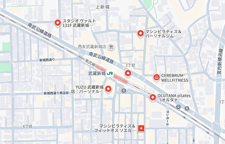 武蔵新城には様々なピラティススタジオがありますが、その立地はスタジオごとで異なります。