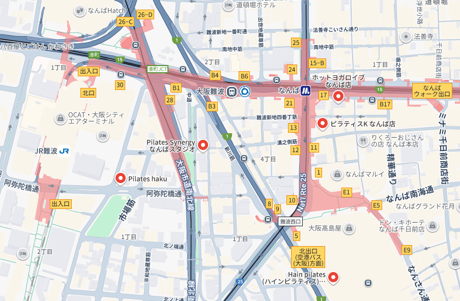 難波には様々なピラティススタジオがありますが、その立地はスタジオごとで異なります。
