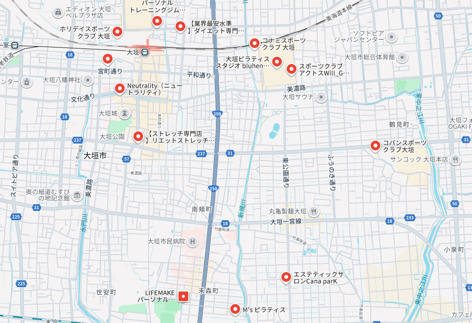 大垣には様々なピラティススタジオがありますが、その立地はスタジオごとで異なります。