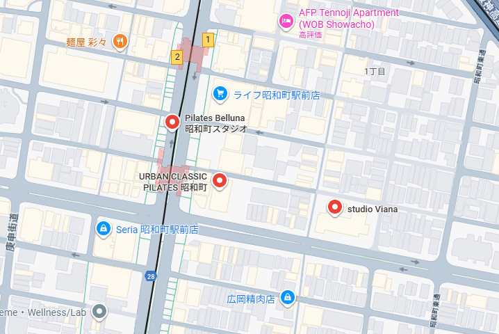 たとえば、アーバンクラシックピラティス 昭和町店は昭和町駅のすぐ近くにありますが、ナチュパは昭和町駅からやや離れた場所にスタジオを構えていますよね。