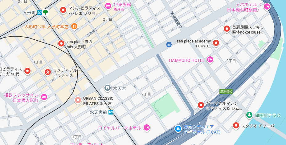 特に、水天宮前駅周辺はピラティススタジオが集まっていますので、まずは自宅や職場からアクセスしやすいスタジオを探すといいでしょう。
