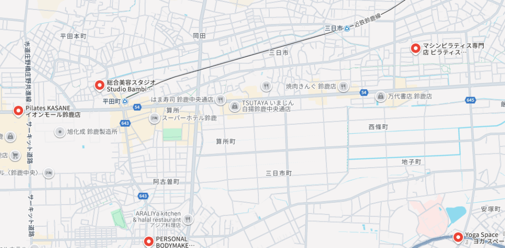 鈴鹿には様々なピラティススタジオがありますが、その立地はスタジオごとで異なります。