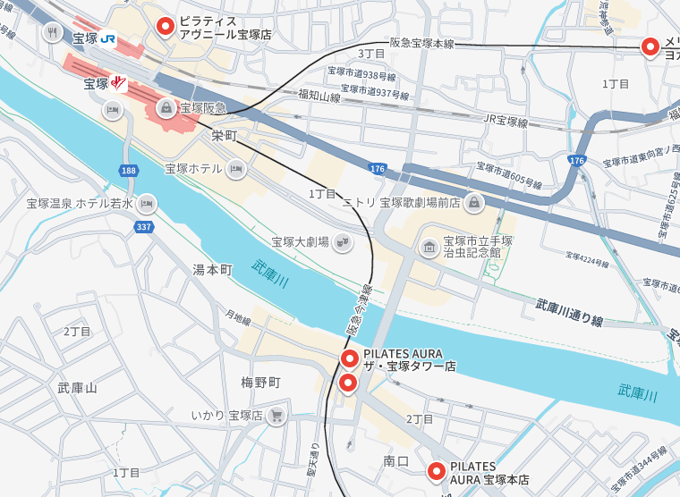 宝塚には様々なピラティススタジオがありますが、その立地はスタジオごとで異なります。