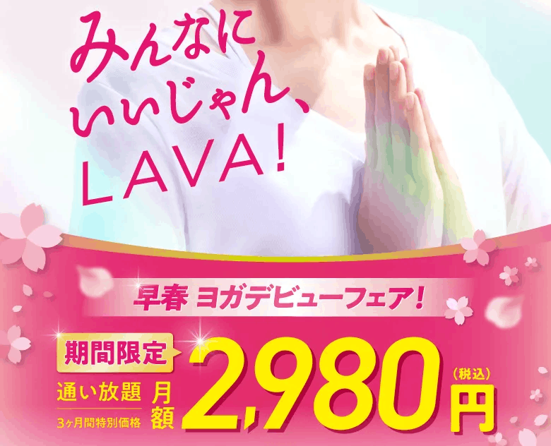 業界最大手のホットヨガスタジオLAVAでは、手ぶら体験100円&3ヶ月間通い放題キャンペーンが行われています。