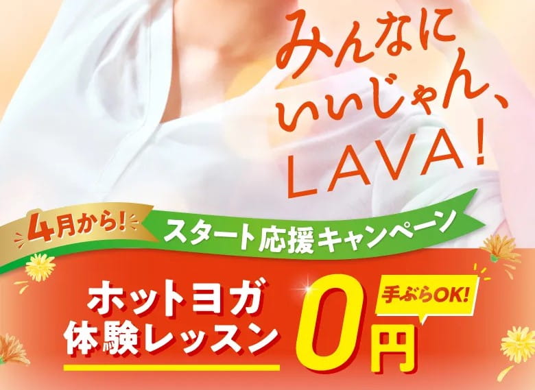 業界最大手のホットヨガスタジオLAVAでは、手ぶら体験0円&3ヶ月間通い放題キャンペーンが行われています。
